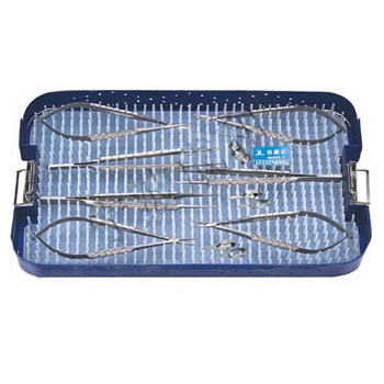 顯微外科手術器械包 HC-A803詳細信息: 顯微鑷15cm 0.15mm 直1把,顯微鑷15cm 0.3mm直 2把,顯微持針鉗14cm 直1把,顯微持針鉗14cm 彎1把,顯微剪14cm直1把,顯...
